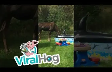 Luonnon lähellä asumisessa on hyvät ja huonot puolensa. Alaskalainen perhe koki melkoisen yllätyksen, kun täysikasvuinen hirvi kuokki lasten allasbileisiin heidän kotinsa takapihalla. Eläin nautti uima-altaan viileästä vedestä ja herkutteli lasten tacoilla.